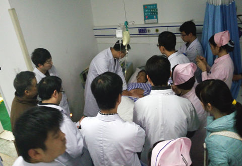 在與肝膽外科主任謝敖文進行了簡單的交流后,劉威教授來到病房對一例重癥胰腺炎及胰體占位的疑難復(fù)雜病人進行現(xiàn)場查房指導(dǎo),然后結(jié)合患者的影像學(xué)資料進行病例討論,對此份病例難點部分做出了客觀的點評和指導(dǎo)。劉威教授為肝膽胰外科及代謝減重外科領(lǐng)域?qū)<?,病例討論完畢后,劉教授還做了題為《腹腔鏡保留脾臟的胰體尾切除》的精彩授課,并與科室醫(yī)務(wù)人員展開充分交流。