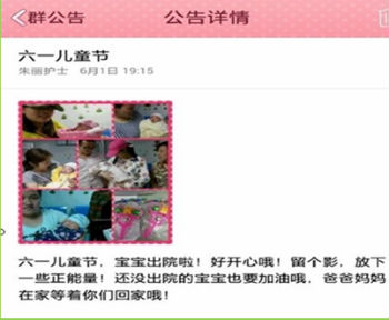新生兒一區(qū)(三等獎(jiǎng)):“寶寶家長(zhǎng)QQ群”,為初為父母的患兒家長(zhǎng)提供了育兒知識(shí)平臺(tái),對(duì)拉近醫(yī)患關(guān)系起到了良好的紐帶作用。