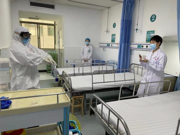檢查過程中,專家還隨機抽取了護士進行穿脫防護服、中心吸痰操作的考核。