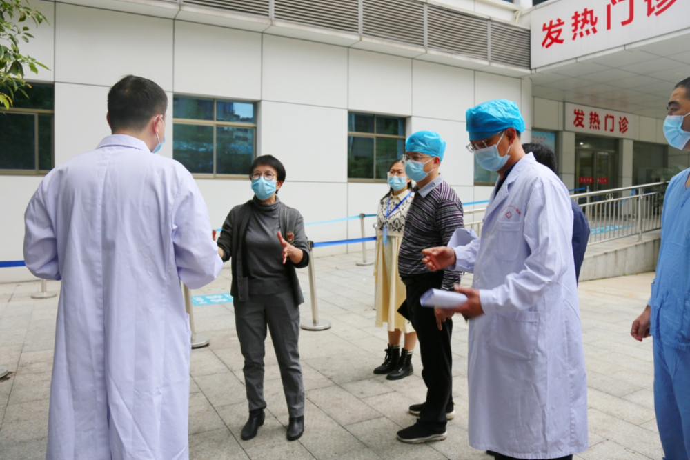 近期,我國多地出現(xiàn)新冠肺炎本土疫情,為進一步提高我院疫情應急管控能力,加強醫(yī)護人員對高?;蛞伤菩滦凸跔畈《痉窝谆颊叩尼t(yī)療救治及轉運相關工作流程的掌握程度,通過演練查漏洞,補短板。10月30日下午,我院感控科、醫(yī)務部、護理部、安???、發(fā)熱門診等多部門,根據(jù)新型冠狀病毒肺炎防控要求,開展了醫(yī)院內(nèi)出現(xiàn)新冠病毒肺炎患者的實景應急演練,院長雷冬竹任總指揮,市衛(wèi)健委副主任肖和平、醫(yī)政科科長鐘茜園現(xiàn)場指導,參與應急演練全過程。