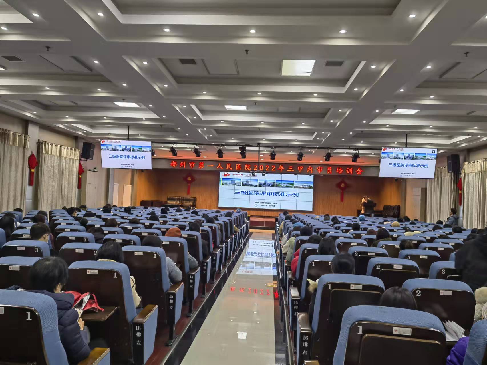 為有序推進我院三甲復審工作,2022年1月24日,全面質(zhì)量管理部三甲辦及醫(yī)務部在中心醫(yī)院后勤樓三樓多媒體會議室,組織召開了全院三甲內(nèi)審員培訓會議,同步在各醫(yī)療區(qū)分會場召開視頻會議。全院醫(yī)療、護理、機關共300余名三甲內(nèi)審員參加了培訓。