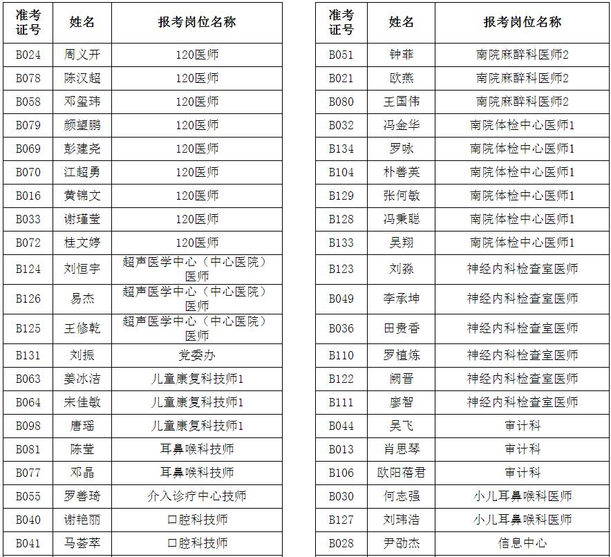 郴州市第一人民醫(yī)院2016年專科、本科人員招聘筆試入圍名單公告