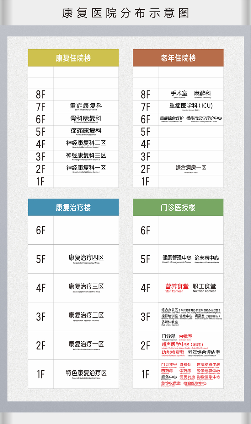 郴州市第一人民醫(yī)院共分為東、南、西、北、中五個院區(qū),和一個康養(yǎng)中心,簡稱為“一體四輪一中心”。