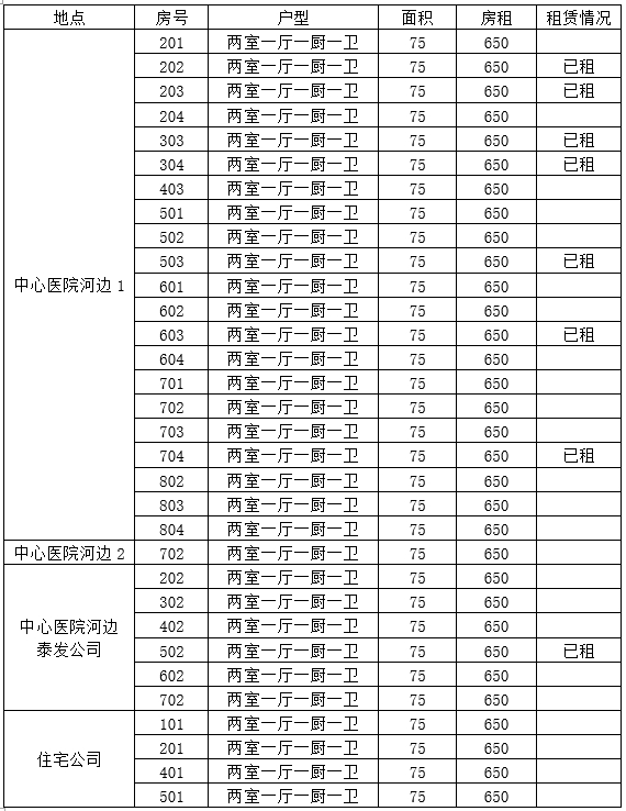為解決醫(yī)院職工及家屬階段性住房問(wèn)題,醫(yī)院決定將職工過(guò)渡房全面對(duì)外出租。