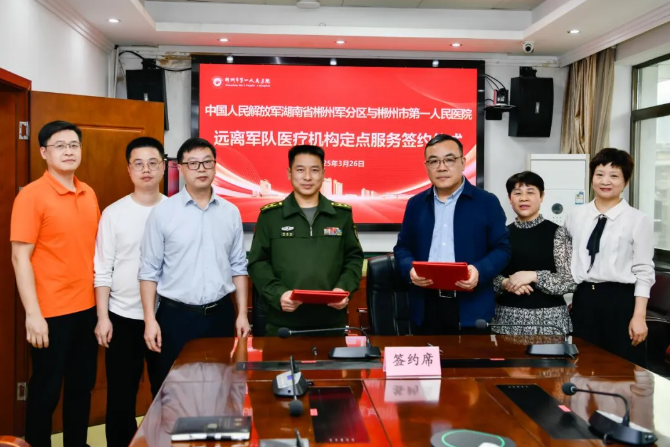 3月26日,郴州市第一人民醫(yī)院與湖南省郴州軍分區(qū)簽訂社會化醫(yī)療協(xié)議,切實解決軍隊遠離軍隊醫(yī)療機構單位人員就醫(yī)難的問題,讓所屬官兵在駐地享受就近就便的優(yōu)質醫(yī)療服務。