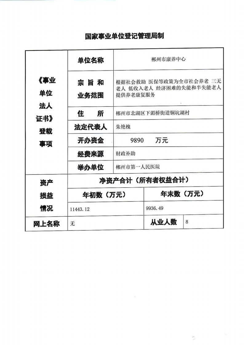 郴州市康養(yǎng)中心2024年度事業(yè)單位法人報告書