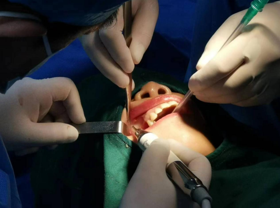 5、無痛微創(chuàng)牙槽外科:以無痛麻醉儀保證充分局部麻醉后,利用超聲骨刀,激光等先進(jìn)無痛微創(chuàng)設(shè)備進(jìn)行牙槽頜骨手術(shù),如埋伏牙拔除,開窗助萌,頜骨囊腫切除等。