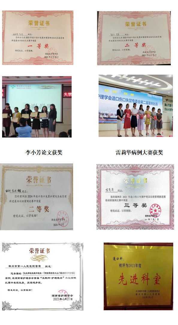 本專科作為“湖南省造口治療師學(xué)?!比珖R床培訓(xùn)實習(xí)基地,15年來已為全國各地培養(yǎng)了超過四百名國際傷口治療師,桃李滿天下,造福了四面八方。同時,作為湘南學(xué)院臨床見習(xí)基地,5年來已指導(dǎo)1300多名學(xué)生完成了360節(jié)課時的教學(xué)任務(wù)。我們積極投身科研工作,成功完成了1項國家級科研課題和5項醫(yī)院課題。此外,本科室的工作人員在繁忙的工作之余,致力于撰寫論文,總結(jié)臨床經(jīng)驗,近年來在《健康科學(xué)報告》等權(quán)威雜志上發(fā)表了28篇學(xué)術(shù)論文,并出版了4本專著。